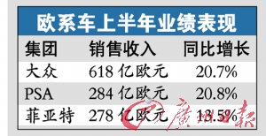 據(jù)統(tǒng)計,大眾汽車集團(tuán)銷售收入升至618億歐元,同比增長20.7%。另一家歐洲汽車巨頭標(biāo)致雪鐵龍也發(fā)布了半年業(yè)績,集團(tuán)凈利潤為6.8億歐元,上半年營業(yè)額增長20.8%;日常營業(yè)利潤提高至11.37億歐元,而去年同期虧損 8.26億歐元。(劉俊)
