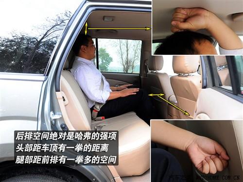 空間大、更實(shí)用是SUV車型的普遍特點(diǎn),在這方面外觀大氣的哈弗車內(nèi)的表現(xiàn)同樣不錯(cuò),身高175cm的編輯坐在前排頭頂還有四指的空間,而坐入后排后頭部空間增加至一拳,腿部則有一拳以上的距離。