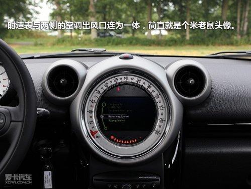 不用想,中控臺(tái)上最大的那個(gè)時(shí)速表肯定會(huì)成為視覺焦點(diǎn),原因之一是時(shí)速表與兩側(cè)的空調(diào)出風(fēng)口連為一體,簡直就是個(gè)米老鼠頭像,可愛至極。原因之二是這個(gè)時(shí)速表中間增加了一塊6.5英寸液晶顯示屏,顯然,MINI將東家的i-Drive多媒體控制系統(tǒng)移植到了Countryman上,命名為MINIVisual Boost,只是沒有寶馬上那個(gè)顯眼的控制旋鈕,在MINI上這個(gè)旋鈕被放在了換擋底座的后方,使用上還算順手,只是造型比較簡化,但同樣擁有兩個(gè)直觀的快捷鍵。