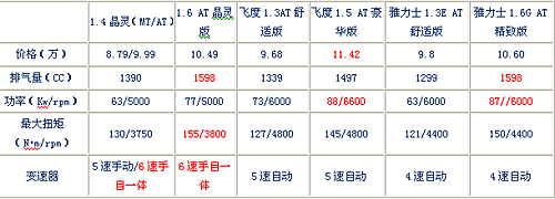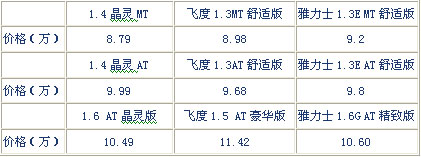 上表列出了晶靈版晶銳、飛度和雅力士三款車型的售價(jià),從中我們可以發(fā)現(xiàn):首先,在手動(dòng)車型方面,晶靈版1.4MT車型的售價(jià)僅為8.79萬(wàn),比雅力士和飛度都要低;其次,晶靈版晶銳1.4AT在價(jià)格上看似要比競(jìng)品的1.3L AT車型稍高,但考慮到晶銳采用的是Tiptronic6擋手自一體變速箱,而飛度和雅力士都是四檔自動(dòng),落后不止一點(diǎn),加上晶銳的配置要豐富很多,這點(diǎn)在后文會(huì)有詳細(xì)介紹,綜合來(lái)看晶銳1.4AT晶靈版的性價(jià)比優(yōu)勢(shì)還是相當(dāng)突出的。另外,晶銳1.6L AT晶靈版,無(wú)論是品質(zhì)上,還是配置上都擁有同級(jí)競(jìng)品車型所無(wú)可比擬的優(yōu)勢(shì),而其價(jià)格卻要大大低于這些競(jìng)品。