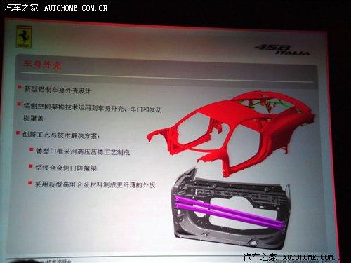法拉利458 Italia采用了新型鋁制空間架構(gòu)模塊化底盤設(shè)計(jì),不僅大大降低了設(shè)計(jì)和制造的成本,而且在維修為更換部件方面更是有著很大優(yōu)勢,各個(gè)部件可以單獨(dú)進(jìn)行更換配件,458 Italia在局部還使用了航空鋁制材料,鋁制結(jié)構(gòu)在重量和強(qiáng)度方面有相比于鋼制結(jié)構(gòu)車型要出色。