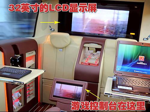 32英寸的LCD顯示屏放置在前排座椅后的隔斷墻上,其可以作為索尼Vaio筆記本電腦系統(tǒng)的顯示器,并且該車的車廂內(nèi)部還有無線網(wǎng)絡(luò)又來連接另外的筆記本電腦。所安裝的索尼Playstation 3游戲控制臺可以播放電影以及賽車模擬游戲。此外其較大的顯示屏還可以同時全方位的展示車輛周圍的狀況。