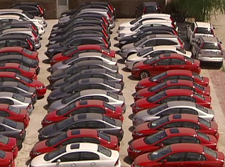 在新亞市的一個商品車停車場,記者看到這個停車場里停滿了斯柯達還沒有出售的汽車,從汽車前面的標識牌可以看到,一輛汽車的啟用日期是2010年的3月18日。一輛汽車的啟用時間是2010年的4月,到現在有4個月左右的時間。另外一輛汽車的啟用日期是2009年12月9號,也就是從生產到現在已經有8個月的時間了。