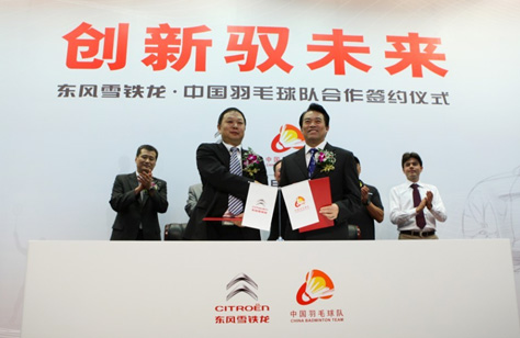 中新網(wǎng)8月11日電 昨日,東風(fēng)雪鐵龍成為中國(guó)羽毛球隊(duì)高級(jí)贊助商合作簽約儀式在國(guó)家體育總局隆重舉行。本次簽約儀式以“創(chuàng)新馭未來(lái)”為主題,“創(chuàng)新”代表著雙方理念和精神的共鳴,“馭未來(lái)”則代表著雙方推動(dòng)中國(guó)羽毛球運(yùn)動(dòng)發(fā)展的愿景。未來(lái)三年中,東風(fēng)雪鐵龍將正式成為中國(guó)羽毛球隊(duì)、中國(guó)羽毛球協(xié)會(huì)高級(jí)贊助商;東風(fēng)雪鐵龍C5及世嘉將成為中國(guó)羽毛球隊(duì)指定用車(chē);東風(fēng)雪鐵龍將為中國(guó)羽毛球隊(duì)及其參與的各大賽事提供鼎力支持;同時(shí),還將聯(lián)合中國(guó)羽毛球協(xié)會(huì),共同推動(dòng)中國(guó)羽毛球運(yùn)動(dòng)的普及和發(fā)展。