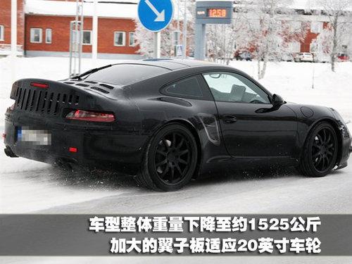 新款911保留了鋼平臺結(jié)構(gòu),主要由組合的鋼鐵,鋁和塑料復合材料建造的機構(gòu)。體重的優(yōu)化使得新款比之前削減了大約45公斤重量,車型整體的重量下降至約一千五百二十五公斤。在車身尺寸方面,新一代911長度和寬度都有提升,但基本輪廓不會發(fā)生大幅度的改動。外觀最大的改變在于加大的翼子板,目的是為了適應20英寸車輪的大小。