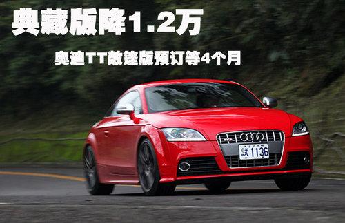 據(jù)4S店銷售人員介紹:目前奧迪TT已上市的典藏版車型店 內(nèi)有現(xiàn)車,售價(jià)為53.9萬元,TT標(biāo)準(zhǔn)版車型有現(xiàn)車,售50.9萬元,但還有2款在50.9萬元基本款車型上增配車型,分別售54.54萬及55.31 萬,以上這4款車型都可優(yōu)惠1.2萬元,車身顏色共有白色、紅色、銀色及日光橙色供挑選。奧迪TT典藏版相對(duì)在售TT車型不同的是,這款車配以橘色車身及 運(yùn)動(dòng)套件,車內(nèi)車外都進(jìn)行運(yùn)動(dòng)改裝,看起來十分漂亮。如需預(yù)定TT及TTS其他顏色及車款,需等待4-6個(gè)月時(shí)間,由于是按照車主需求定制車型,所以等待時(shí)間較長(zhǎng)。