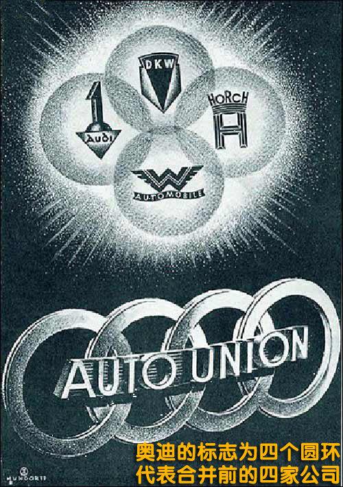 這四家公司對當時德國汽車工業(yè)的進步做出了杰出的貢獻。這四家汽車公司于1932年合并為汽車聯(lián)盟股份公司(auto union ag)。從汽車產(chǎn)量來說,汽車聯(lián)盟是當時德國第二大汽車制造公司,商品標志為四個連接的圓環(huán),代表參與合并的四家汽車公司。世界上也就首次出現(xiàn)了四環(huán)標志。