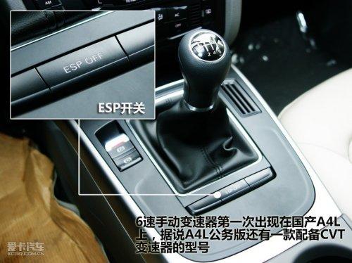 此次拍攝的這款A(yù)4L政府公務(wù)版為手動(dòng)車(chē)型,但據(jù)商家透露A4L政府公務(wù)版還將推出CVT車(chē)型。比較令人興奮的是,這臺(tái)手動(dòng)變速器為6前速,使其成為市面上奇貨可居的6速手動(dòng)車(chē)型,而駕駛手動(dòng)奧迪A4L相信對(duì)廣大喜愛(ài)操控的車(chē)迷也是一個(gè)不小的誘惑。