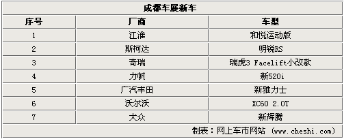 這屆成都車(chē)展上,既有國(guó)產(chǎn)車(chē)型又有進(jìn)口車(chē)型首發(fā),其中江淮和斯柯達(dá)將發(fā)布運(yùn)動(dòng)版車(chē)型,而奇瑞、力帆和廣汽豐田分別發(fā)布瑞虎3小改款、新520、新雅力士三款改款車(chē),而備受關(guān)注的沃爾沃XC60 2.0T也將在車(chē)展上市,預(yù)計(jì)售價(jià)在40-50萬(wàn)之間。另外大眾新輝騰將在車(chē)展期間推出,新車(chē)除了搭載3.6L、4.2L和6.0L三款引擎之外,還將有3.0T渦輪增壓引擎推出。