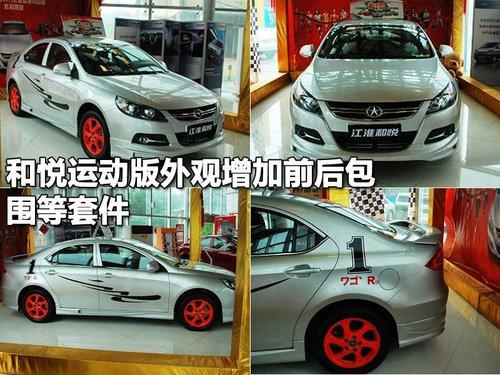 和悅運(yùn)動(dòng)版的外形還是具有相當(dāng)?shù)挠H和力,但進(jìn)行了外觀改裝后,顯得運(yùn)動(dòng)味十足,加了前包圍的運(yùn)動(dòng)版前臉給人更加銳利的感覺(jué)。和悅的前臉采用雙“U”型設(shè)計(jì),端莊大氣,車(chē)身側(cè)面,寬大的后視鏡有些夸張,改裝的紅色鋁合金輪轂運(yùn)動(dòng)感很強(qiáng)。側(cè)裙加裝了運(yùn)動(dòng)包圍,另外除了尾部的運(yùn)動(dòng)包圍,還增加了一個(gè)運(yùn)動(dòng)導(dǎo)流板。