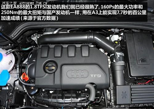 回到正題,A3的性價比高嗎?的確不高。首先從動力系統(tǒng)來說,A3的1.4T、1.8T發(fā)動機我們都不陌生,7速DSG變速箱也是大眾正在主推的新技術,這樣的動力總成甚至在斯柯達明銳上完全一樣,所以如果讓我們相信A3的先進性,從動力系統(tǒng)上顯然不行。不過相比前面兩位選手,A3的動力性能毫無疑問是最好的,特別是1.8T車型,廠家公布的0-100km/h的加速時間不足8秒。