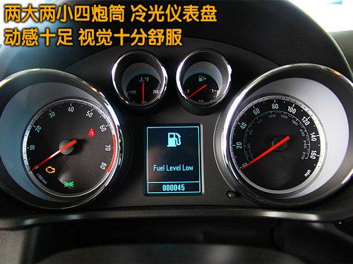 炮筒式冷光儀表盤可以說是目前運動轎車的標配,北美版新君威兩大兩小的設計再加上藍色底光,進一步突出的該車的運動特性。同時在儀表盤中央還配有一塊大約2寸的多公能中文顯示屏,駕駛員可以在行車中十分準確的了解到車輛信息。