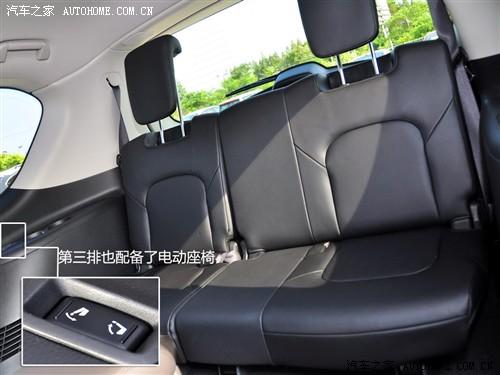 2011款英菲尼迪QX56的車(chē)身尺寸十分夸張,車(chē)長(zhǎng)5290mm寬2030mm高1935mm,軸距達(dá)到3075mm,所以空間和舒適性絕對(duì)不是問(wèn)題。即使是第二排乘客也擁有極高的乘坐感受,獨(dú)立空調(diào)、座椅通風(fēng)、中央扶手箱都是后排獨(dú)享的配置。