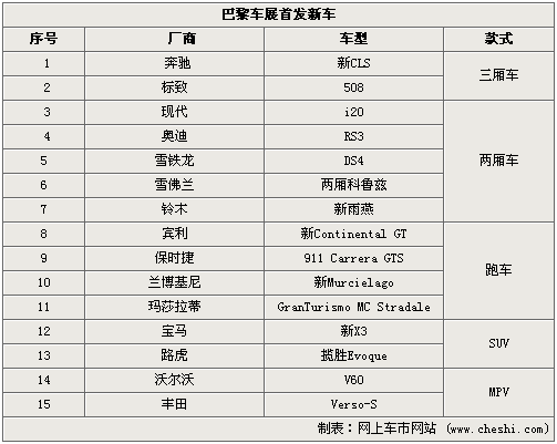 2010巴黎車展將于9月底正式開幕,本屆車展新車云集,數十款新車將在車展全球首發(fā),包括奔馳、寶馬、標致等歐洲本土廠商,也有雪佛蘭、豐田等海外廠商。而這次在開幕前我們所盤點的是巴黎車展首發(fā)后將引入國內銷售的新車,預計將有15款首發(fā)車后續(xù)引入。