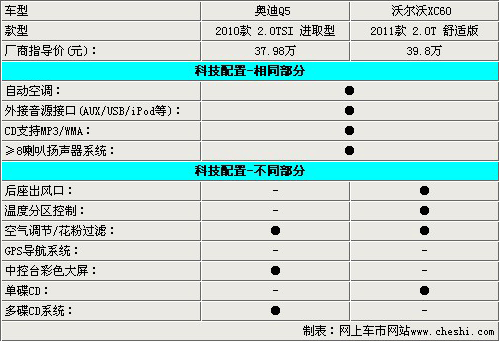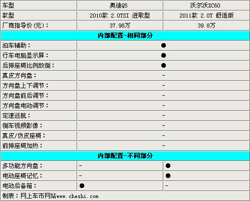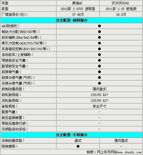 兩款車(chē)除了在安全方面的較量比較均衡以外,其他方面基本上都是奧迪Q5略勝一籌,主打安全牌的沃爾沃,有必要在其他配置方面多下工夫,就最低配而言,價(jià)格方面還是沒(méi)有什么優(yōu)勢(shì)的。