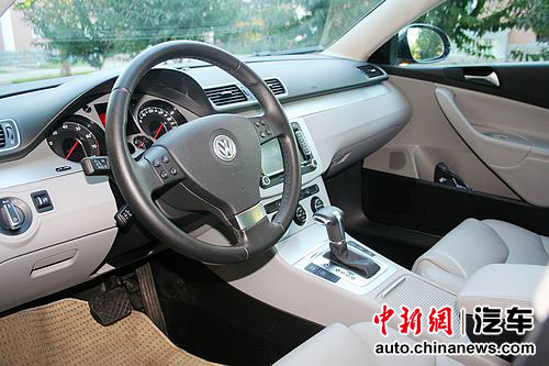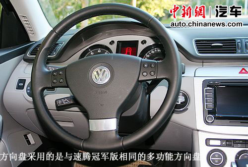 方向盤還是沿用了大眾的三幅方向盤,外圈以真皮包裹手感還算過得去,方向盤兩側(cè)帶有多功能按鍵,可較為方便的對(duì)音響系統(tǒng)等進(jìn)行控制,但由于按鈕較小使用起來并不是很舒服,不過也許在用慣了的情況下還算好用。