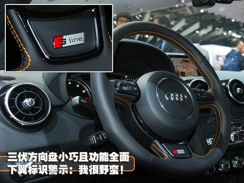 方向盤(pán)是車(chē)主最長(zhǎng)接觸愛(ài)車(chē)的地方,A1也把這里當(dāng)作彰顯它特堵特性的位置。真皮包裹的質(zhì)感很棒,橙色的縫線(xiàn)經(jīng)過(guò)內(nèi)側(cè)輪廓得到強(qiáng)化。兩個(gè)側(cè)翼設(shè)計(jì)有多功能按鍵,為用戶(hù)提供了方便安全的操作,下翼吧“S line”標(biāo)識(shí)再次嵌入,時(shí)刻提醒駕駛者這臺(tái)A1擁有著不平凡的身份和勁道。