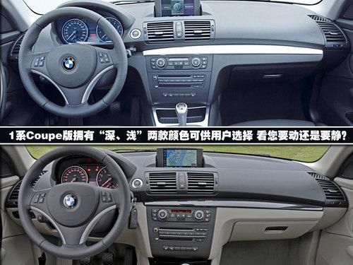 內(nèi)飾的風(fēng)格1系Coupe版延續(xù)了現(xiàn)款車型簡(jiǎn)約精致的整體風(fēng)格,一共提供兩種深淺不同的配色方案供您挑選,全黑色系一定是運(yùn)動(dòng)家們的最愛,典雅的灰白內(nèi)飾則是西服一派的首選。如果還覺得不夠刺激,紅黑相間的特別配色一定讓您血脈噴張,看上一眼就能激起征服它欲望。