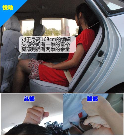悅動的車身長進了不少,車身長/寬/高分別達到了4542mm/1775mm/1490mm,軸距更是達到了2650mm,這使得車內(nèi)空間較之伊蘭特更充裕:身高168cm的乘客在前排時,在保證一個自然放松姿勢的同時,頭部還能夠留有一拳以上的活動空間,只是側(cè)向支撐不佳,座椅也只能通過手動調(diào)節(jié)。