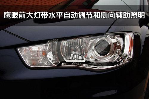 三菱2010款歐藍德EX 3.0L車型的前大燈采用鷹眼式設計,并且?guī)в兴阶詣诱{節(jié)功能和側向輔助照明功能。與歐藍德EX其他排量不同的是,3.0L車型的前霧燈和前臉周圍都帶有鍍鉻裝飾,這一點與EVO X非常相似。另外,歐藍德EX 3.0L的前保險杠底部配備了護板。