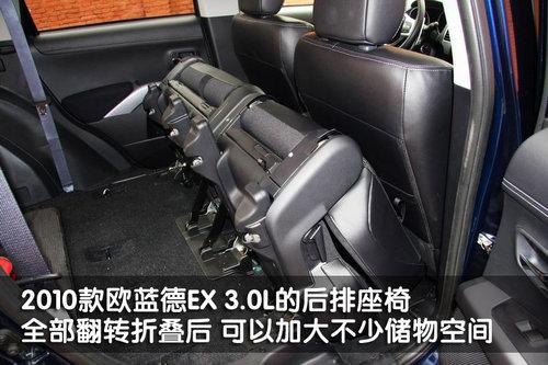歐藍德EX 3.0L車型的后排座椅既可向前翻轉(zhuǎn),拓展出更多的后行李箱空間,同時也可靠背放倒,并且4/6按比例分離,在有后排乘員的情況下,仍能放置長尺寸的物品。