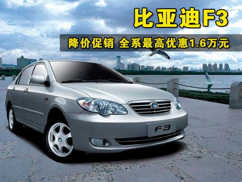 比亞迪F3是一款實用的家用車型,較為經(jīng)濟的用車成本和較低的入門價格能很好的滿足消費者的需求。今年比亞迪F3又推出了智能白金版,新款車型增加了無鑰匙系統(tǒng)、智能娛樂通訊系統(tǒng)等高端配置。近日,網(wǎng)上車市記者從比亞迪北京經(jīng)銷商處了解到,比亞迪F3全系車型最高降價1.6萬元,詳情請見下表: