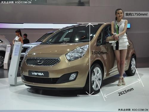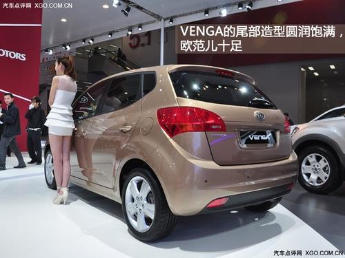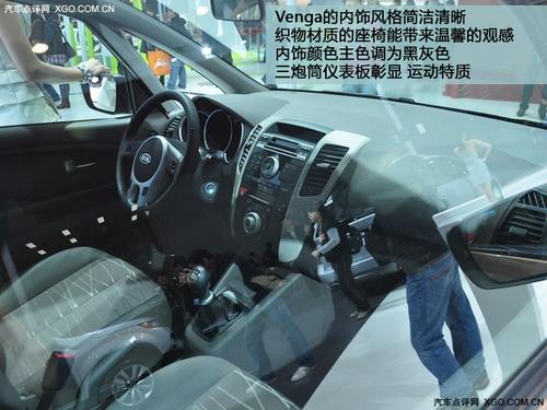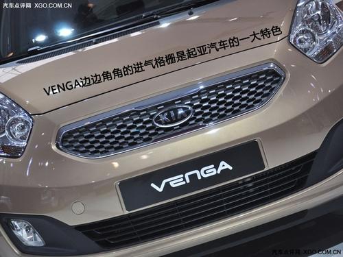 起亞Venga外觀造型與曾亮相日內(nèi)瓦車展的No.3概念車相仿,長4068mm,寬1765mm,高1600mm,軸距為2615mm,其后排座椅可以放倒。其內(nèi)飾將經(jīng)過巧妙的設(shè)計使內(nèi)部空間最大化。