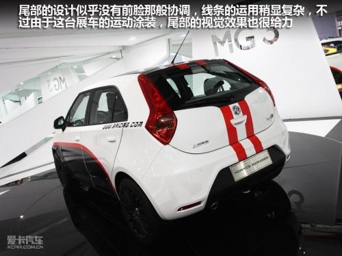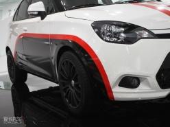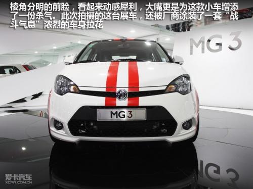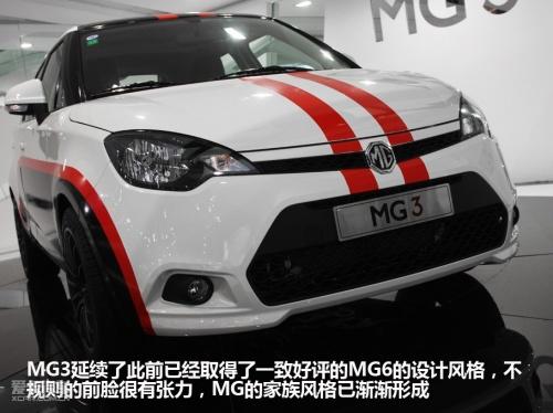 此次拍攝的這臺(tái)展車,經(jīng)過(guò)了廠家的輕度改裝。主要是“身披”了一套戰(zhàn)斗風(fēng)格非常濃烈的車身拉花,以及4個(gè)黑色的賽車競(jìng)技風(fēng)格輪轂,其余部分與量產(chǎn)車型無(wú)異。外觀經(jīng)過(guò)精心改造的MG3愈顯有型,是一臺(tái)非;鹄钡倪\(yùn)動(dòng)型A0級(jí)小車。從前臉可以看出,MG3與MG6風(fēng)格十分相似,顯然MG品牌已經(jīng)找到了屬于自己獨(dú)特的家族風(fēng)格。