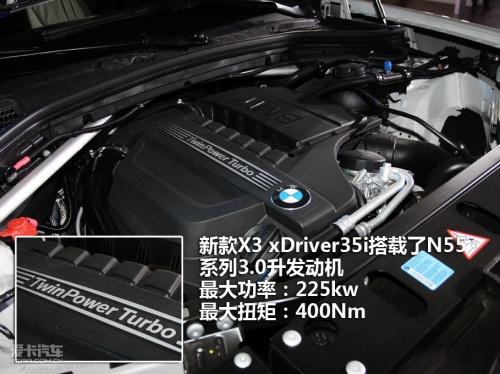 動力方面,新款X3xDriver35i搭載了動力更強的N55系列3.0升發(fā)動機,配合雙渦輪增壓可以發(fā)揮出306馬力的最大功率和400牛米的最大扭矩,官方給出的百公里油耗僅為8.8升。另外,xDriver全時四驅(qū)系統(tǒng)也是X3的全系車型標準配置。