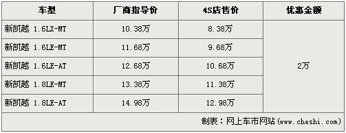 據(jù)4S店銷售人員介紹,新凱越分為1.6L與1.8L兩種排量車型,目前新凱越的1.6L全系優(yōu)惠2萬(wàn)元,較上個(gè)月的優(yōu)惠降幅有所回縮。經(jīng)優(yōu)惠后,全系最低配的1.6LX-MT車型售價(jià)回升到了8.38萬(wàn)元。經(jīng)優(yōu)惠后,1.8L手動(dòng)和自動(dòng)兩款車型售價(jià)也回升到了11.38萬(wàn)元和12.98萬(wàn)元。銷售人員還介紹,目前1.6L車型店內(nèi)無(wú)現(xiàn)車,欲購(gòu)買者需交訂金2000元,下個(gè)月才可提車。