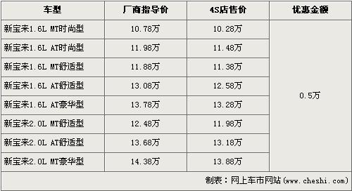 新寶來是一汽大眾于去年10月上市的新車型,新寶來共分為1.6L及2.0L兩個(gè)排量,全系車型多達(dá)7個(gè),價(jià)格區(qū)間為10.78萬元-14.38萬元。近期根據(jù)網(wǎng)上車市價(jià)格監(jiān)測(cè)系統(tǒng)顯示,新寶來全系優(yōu)惠5000元,具體車型價(jià)格詳情請(qǐng)看下表: