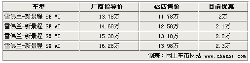 據(jù)4S店銷(xiāo)售人眼介紹:目前新景程現(xiàn)車(chē)非常充足,顏色也較為齊全,不過(guò)缺少紅色、金色。目前優(yōu)惠幅度在2萬(wàn)元-2.3萬(wàn)元之間,最低配置車(chē)型已經(jīng)下降至11.78萬(wàn)元。作為一款標(biāo)準(zhǔn)B級(jí)轎車(chē),新景程的性?xún)r(jià)比優(yōu)勢(shì)非常明顯。