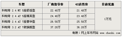 據(jù)雪佛蘭4S店銷售人員介紹:目前2.4升排量車型現(xiàn)車較為充足,顏色較齊全,白色、銀色現(xiàn)車很多,但無紅色車型,如預定需要等待1-2周時間。3.2車型依舊無現(xiàn)車,訂車需等一個月時間?婆疗嫒的壳翱蓛(yōu)惠1萬元現(xiàn)金,不送任何裝飾。