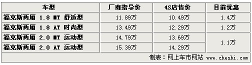 據(jù)4S店銷售人員介紹:目前?怂箖蓭1.8升兩款車型現(xiàn)車較充足,顏色齊全,手動(dòng)擋車型目前優(yōu)惠1.4萬元,優(yōu)惠后僅為10.49萬元,1.8升自動(dòng)版車型優(yōu)惠1.2萬元,優(yōu)惠后價(jià)格售12.29萬元。2.0升車型目前現(xiàn)車較少,顏色也不齊全,幾乎全部需要預(yù)訂,訂車需等待一個(gè)半月時(shí)間,目前優(yōu)惠1.1萬元。由于2.0升車型銷量較少,所以廠家排產(chǎn)量也非常小,等待時(shí)間也較長(zhǎng)。如果您對(duì)動(dòng)力性要求十分高,推薦2.0升手動(dòng)版車型,如果您作為代步使用,建議購買1.8升車型。