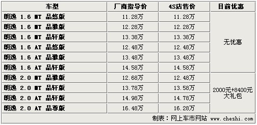 據(jù)4S店銷售人員介紹:目前朗逸全系無現(xiàn)車,全部需要預訂,訂車最少等待1周時間,最長需等1個月。目前朗逸1.6排量車型無任何優(yōu)惠,也不附贈裝飾;但購買2.0升排量車型有2000元的降價,并附贈價值8400元的“大禮包”!按蠖Y包”包括導航、6碟CD、雷鵬車膜、地膠、腳墊、擋泥板、牌照架、迎賓踏板等,可以說您購買2.0升排量車型可以免去做更多的裝飾,綜上推薦購買2.0升排量車型。