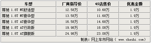 據(jù)4S店銷售人員介紹,目前08款的駿捷及尊馳兩款車型均在持續(xù)熱銷,貨源還是比較充足的,但是個別車型的顏色不是很全,需要預訂,店內的主要顏色為黑色及銀色。相比新款尊馳車型的銷售情況,老款車型同樣受到關注,在新款車型開始銷售后,老款車型的優(yōu)惠幅度更高,所以在各家經銷商處的老款車型均可給出最高1.9萬元的現(xiàn)金優(yōu)惠,另外駿捷的兩款車型也可在原廠家指導價的基礎上給出1.9萬的優(yōu)惠幅度。