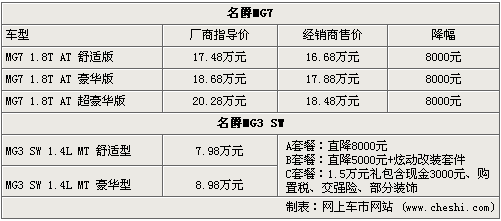 據(jù)MG名爵經(jīng)銷商處銷售人員介紹,目前MG7和MG3 SW都有充足的現(xiàn)車,只有部分車型需要預(yù)訂,MG7最高可優(yōu)惠8千元,而MG3 SW則有三重好禮可選其一,當(dāng)然最直接的就是直降8千元,而1.5萬元的大禮包的優(yōu)惠也挺大的,如果你喜歡個性車就選擇炫動改裝還可在優(yōu)惠五千元。