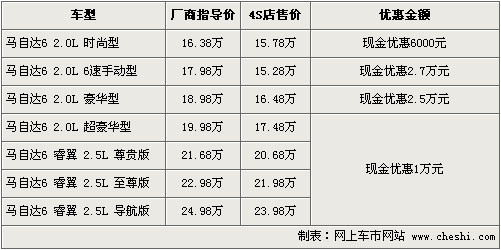 全新馬自達6睿翼在4月份正式上市,在繼承了馬自達6老款車風格同時,睿翼在外觀和內(nèi)飾上帶給消費者耳目一新的感覺。與此同時,老款的馬自達6與睿翼同時銷售,兩款車的價位區(qū)間覆蓋從17萬-25萬,為消費者購車提供了較大的選擇空間。根據(jù)網(wǎng)上車市價格監(jiān)測系統(tǒng)顯示,目前睿翼全系優(yōu)惠幅度加大,老款馬6最高優(yōu)惠2.7萬元。具體行情如下: