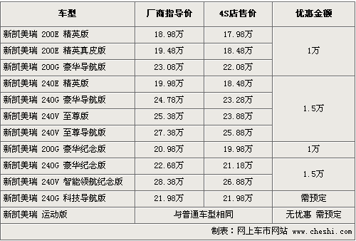 據(jù)4S店銷售人員介紹,凱美瑞在9月份推出了限量版兩款車型,其中包括了運(yùn)動版和紀(jì)念版,運(yùn)動版全系可以免費(fèi)升級運(yùn)動套件。如果夠買這款車的話需要提前預(yù)訂,價格和普通車型相同。車價方面優(yōu)惠幅度在1萬元-1.5萬元之間,入門級車型優(yōu)惠后也跌破了18萬元。