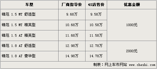 筆者了解,目前鋒范的優(yōu)惠幅度仍然保持最高2000元的優(yōu)惠幅度,其中1.5排量優(yōu)惠現(xiàn)金1000元,精英版和舒適版均有不用顏色現(xiàn)車供應,部分款色還需要預訂,1.8排量最高優(yōu)惠現(xiàn)金2000元。消費者到店還可以有一定幅度的讓利。部分經銷商還有禮包增送。