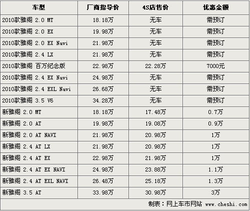 雅閣一直是中級(jí)車市場(chǎng)最受矚目的車型之一,棱角分明的外觀以及舒適的內(nèi)飾空間以及豪華程度成為眾多商務(wù)人士最佳選擇。目前隨著2010款雅閣的上市,整車的性價(jià)比進(jìn)一步提升,但4S店僅有紀(jì)念版車型,其他仍需要選擇。