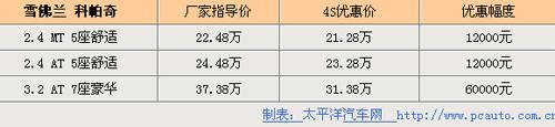 筆者日前走訪北京上海通用雪佛蘭4S店時(shí)獲悉,目前科帕奇最高優(yōu)惠達(dá)到6萬元,科帕奇的性能體現(xiàn)了美國SUV的風(fēng)格,大部分時(shí)間是在公路上飛馳,能夠擁有一般轎車無法比擬的高度和視野。偶爾想要撒一下歡或者應(yīng)付一下壞路也不會讓你失望。詳情請見下表: