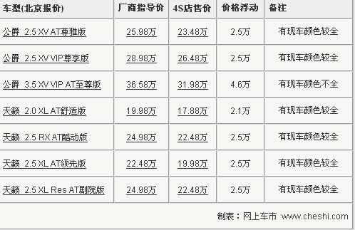 中級(jí)豪華車的標(biāo)桿-------新天籟全系采用了CVT無級(jí)變速箱,連續(xù)的動(dòng)力輸出雖然少了駕駛激情,但順暢的動(dòng)力輸出帶來了平順的駕乘感受,日產(chǎn)系列發(fā)動(dòng)機(jī)不錯(cuò)的抑噪能力也是很有群眾口碑的,配合新天籟寬大舒適的座椅,無論是駕駛還是乘坐,都是一種愜意的享受,商用和家用兩者皆可。近日根據(jù)網(wǎng)上車市價(jià)格監(jiān)測系統(tǒng)顯示,目前購買天籟最高可以享受到4.7萬元的價(jià)格優(yōu)惠,最低售價(jià)僅為17.88萬,具體車型售價(jià)見下表: