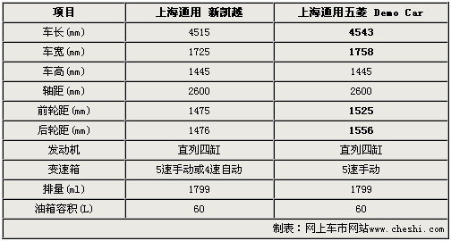 在去年廣西自治區(qū)成立50周年的慶典上,一款在凱越平臺(tái)上重新設(shè)計(jì)、被稱作“Demo Car”的概念車應(yīng)廣西政府要求公開展示,該車型懸掛了五菱車標(biāo)。通過以下基本參數(shù)對(duì)比,讓我們看看上海通用五菱自主轎車與新凱越有著怎樣的共性和差異。