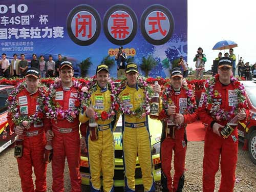 中新網(wǎng)5月17日電 2010年中國汽車拉力錦標賽(簡稱CRC)南京站比賽5月16日下午在江蘇江寧圓滿落下帷幕,參賽的80余輛賽車也停下了轟鳴的引擎聲。在經(jīng)過兩天11個賽段的激烈爭奪后,東南汽車車隊、東南汽車萬宇車隊分別獲得亞、季獎杯。這兩支由“東南汽車”冠名贊助的車隊均以優(yōu)異的成績完成了此次征戰(zhàn)。