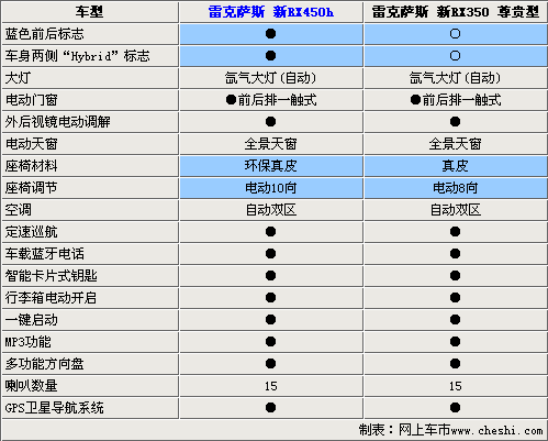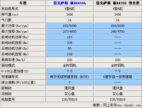 豐田汽車旗下的高端品牌——雷克薩斯在成功的向國內(nèi)引入全新SUV車型RX350后,又于4月20日正式引入了全新RX的混合動力車型RX450h,售價95.4萬元。為了能讓大家更好的了解這款車型,下面我們將吧全新RX350和RX450h放在一起,來看看這兩款車型在各個方面的特點與差別,希望能對您購車有所幫助。