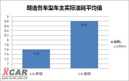 XCAR大量朗逸車主的用車經驗顯示:實際平均油耗:朗逸1.6L手動型7.59L/100km,1.6L自動型8.81L/100km。自動擋車型與手動擋車型實際油耗相差1.2 L/100km,每年油費將多支付1400元。按車輛10年壽命估算,購買朗逸自動擋僅在燃油花費上便增加了1.4萬元隱性成本,手頭并不寬裕的消費者不妨更全面地考慮。