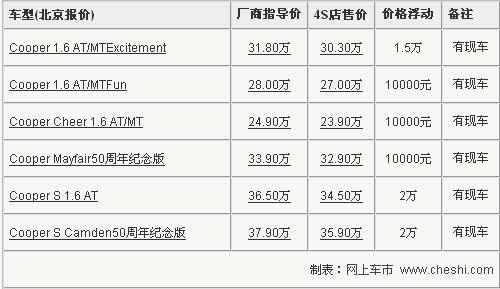 MINI Cooper自問世以來憑借可愛小巧的外形,博得了一批又一批的消費者喜愛,其中女性愛好者占據了此人群中絕大部分。近日據了解,MINI Cooper全系最高優(yōu)惠達到了2萬元,具體車型詳情請看下表: