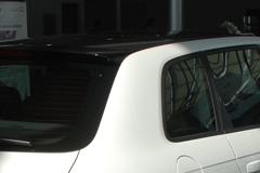 位于裝飾功能大于實(shí)際作用的底邊左側(cè),并排放置著兩個(gè)排氣口,從一個(gè)側(cè)面反映了1.8TSI發(fā)動機(jī)強(qiáng)勁實(shí)力。后擋風(fēng)做了一個(gè)略有外傾的弧度處理,上面的橙色縱橫線整齊交錯,并配有一副小巧的雨刷器。