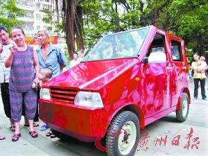 “做這玩意兒主要出于愛好。”留著淺平頭的湖北黃石人彭易然坦然而得意地告訴記者,7年來一直在東莞長安霄邊從事送水、送氣的他,很想擁有一輛自己的轎車,但是高昂的車價(jià)使得他望洋興嘆。于是在去年9月,僅有小學(xué)學(xué)歷的他突發(fā)奇想“自己做一輛”。